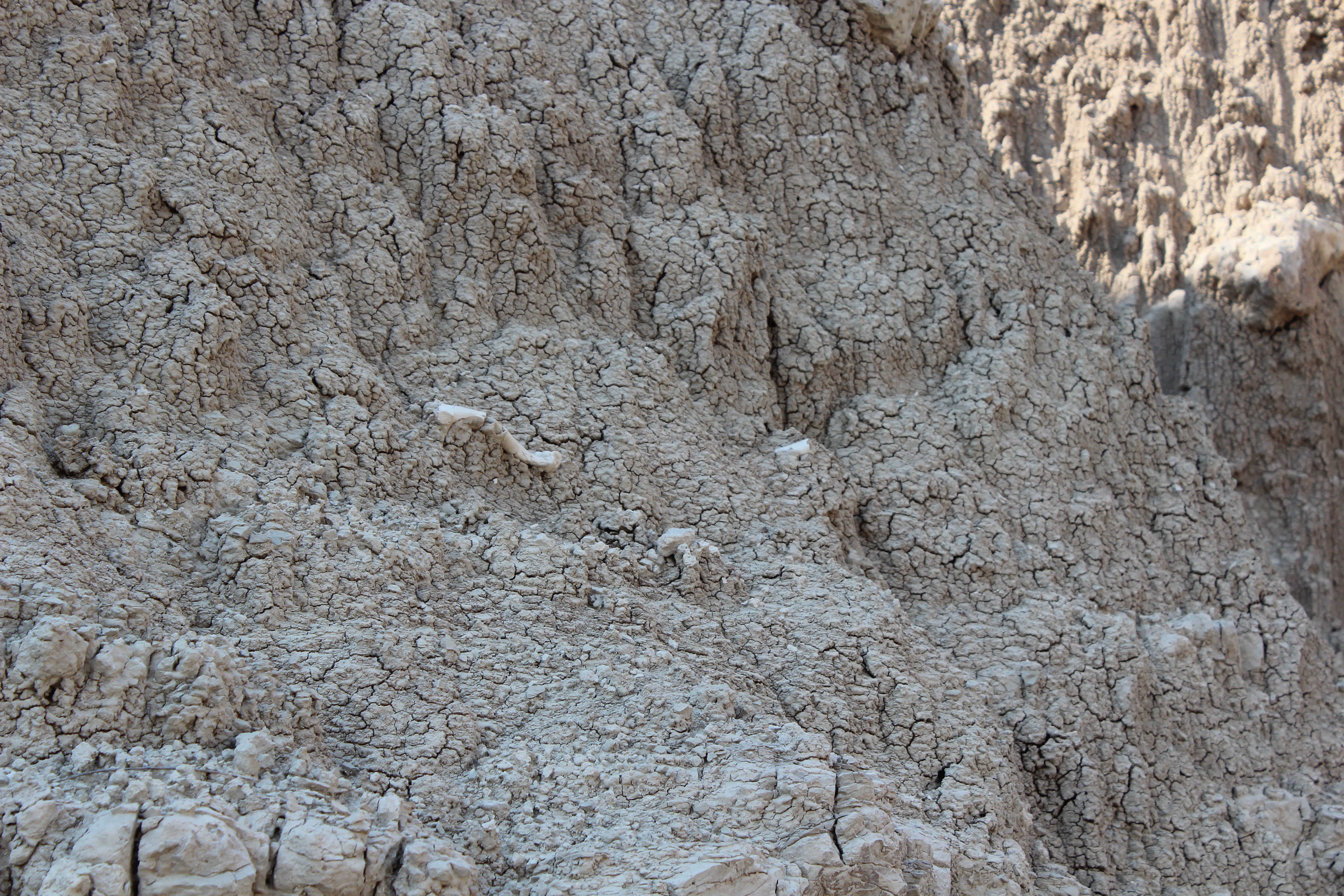 “That is a humerus or upper arm bone (the bone that articulates with the scapula in the shoulder).  It looks to be in relatively complete condition, albeit weathered and fractured.  It also looks like there may be additional fragments of bone eroding on that slope.  Unfortunately, I can’t see enough of them to make any interpretations on what they might be.